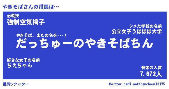 | 伝説のあだ名 | 『伝説のスナイパーやきそば』 |