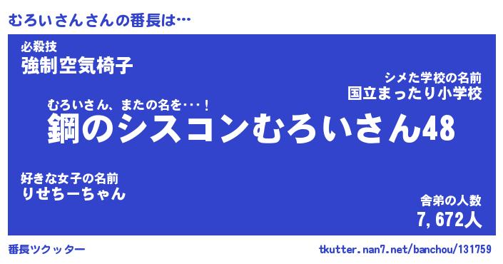 | 2回繰り返すあだ名 | 『むろむろ』『むむろろ』『ぬらぬら』 |