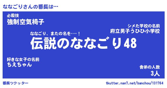 | 猫の名前『ななごりにゃん』性別『メス』 |