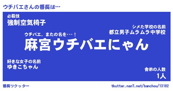 | ポケモン風あだ名 | 『ウチチュウ』『ウチバダネ』 |