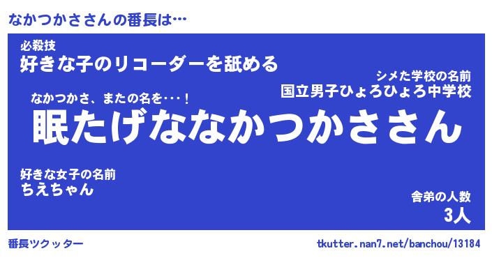 | ヘコむあだ名 | 『なかにゅー』『なまこ酢』 |
