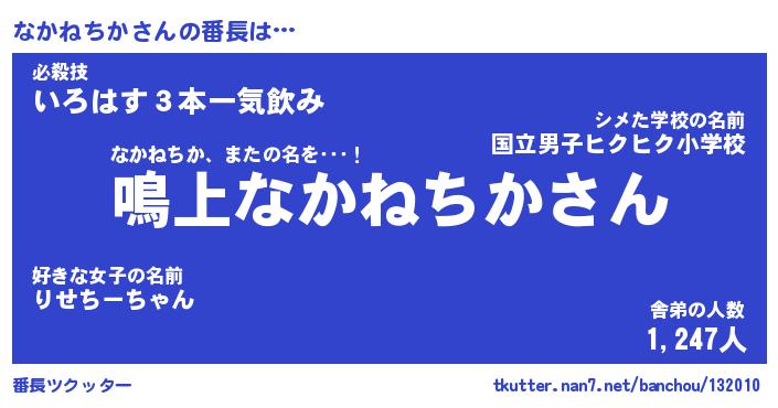 | 2回繰り返すあだ名 | 『なかなか』『ななかか』『ぐちぐち』 |