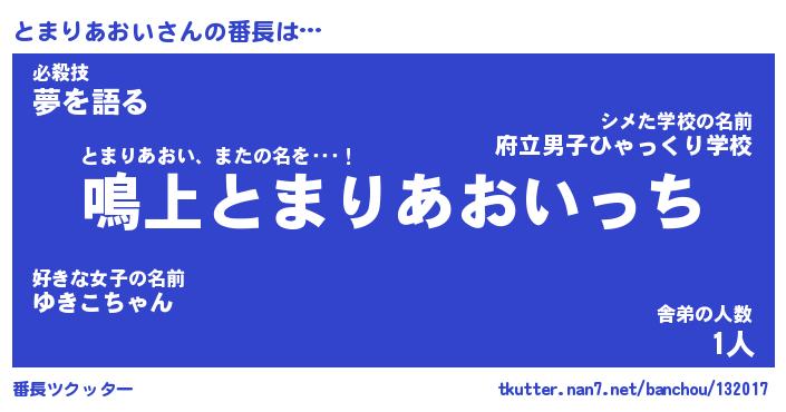 | 肩書あだ名 | 『とまりあおい店長』『とまりあおい班長』 |