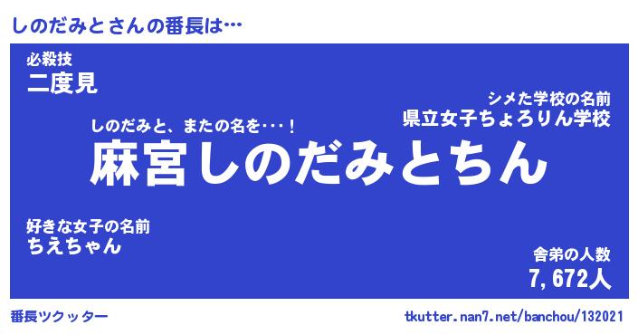 | 2回繰り返すあだ名 | 『しのしの』『ししのの』『ぬめぬめ』 |