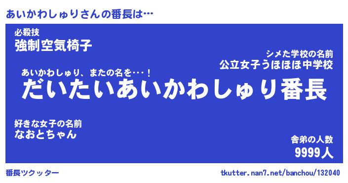 | 肩書あだ名 | 『あいかわしゅり店長』 |