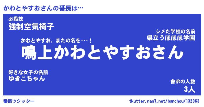 | 肩書あだ名 | 『かわとやすお店長』『かわとやすお校長』 |