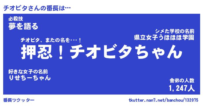 | 可愛いあだ名 | 『チんチん』『チオちー』 |