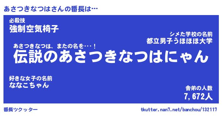 | 伝説のあだ名 | 『伝説のスナイパーあさつきなつは』 |