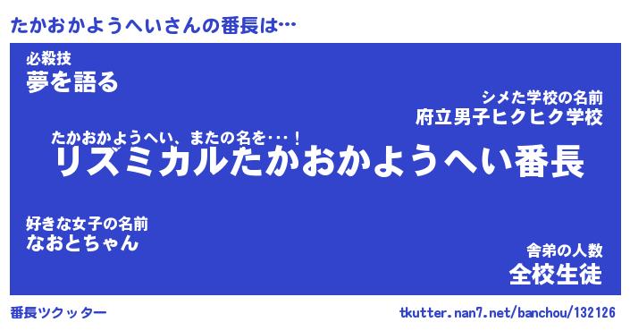 | 肩書あだ名 | 『たかおかようへい店長』 |