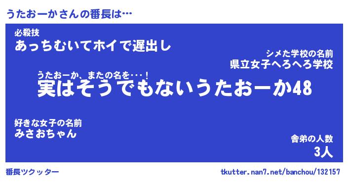| ヒーロー風カッコイイあだ名 | 『スーパーウタオーカ』『魔戒騎士ウタ』 |