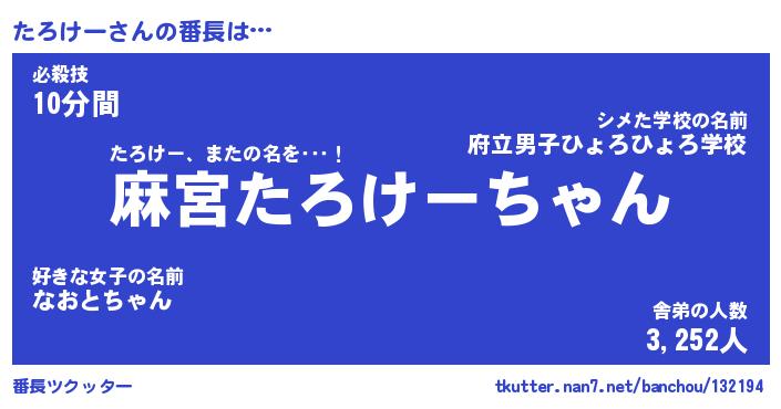 | ヘコむあだ名 | 『たろにー』『レバニラ』『たろっぺ』 |