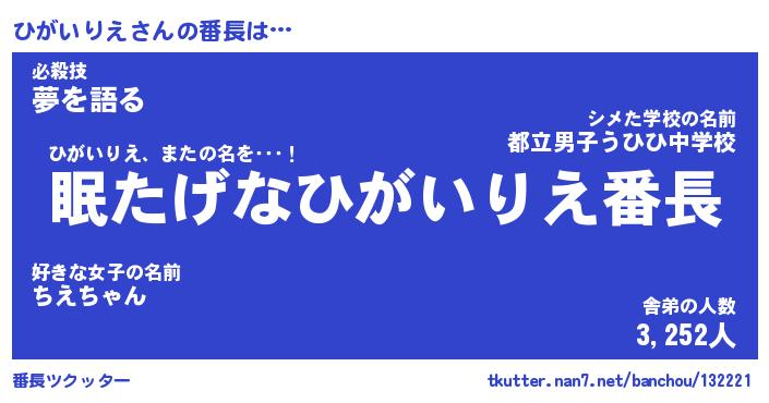 | 伝説のあだ名 | 『封印されしスナイパーひがいりえ』 |