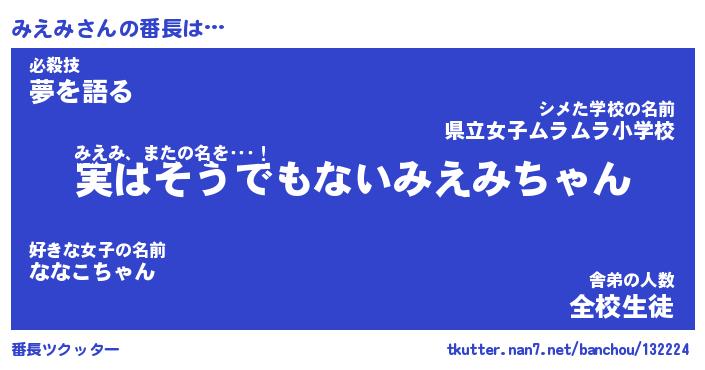 | 肩書あだ名 | 『みえみ社長』『みえみ大統領』 |
