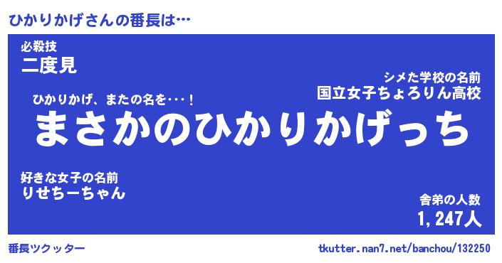 | ヘコむあだ名 | 『ひかもー』『つくし』『ひかお』 |