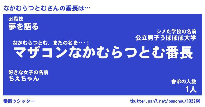 | 肩書あだ名 | 『なかむらつとむ御曹司』 |
