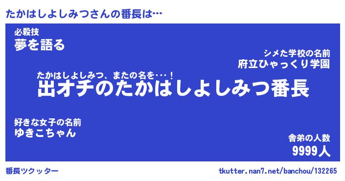 | 肩書あだ名 | 『たかはしよしみつ御曹司』 |