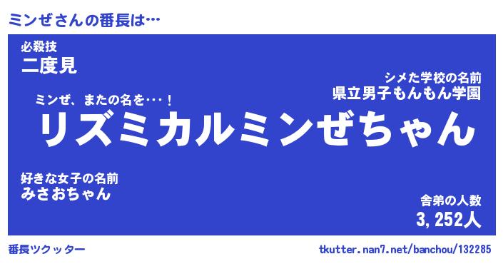 | ポケモン風あだ名 | 『ミンチュウ』『ミンゼダネ』 |
