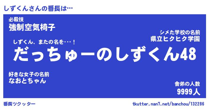 | ヒーロー風カッコイイあだ名 | 『スーパーシズクン』『暗黒騎士シズ』 |