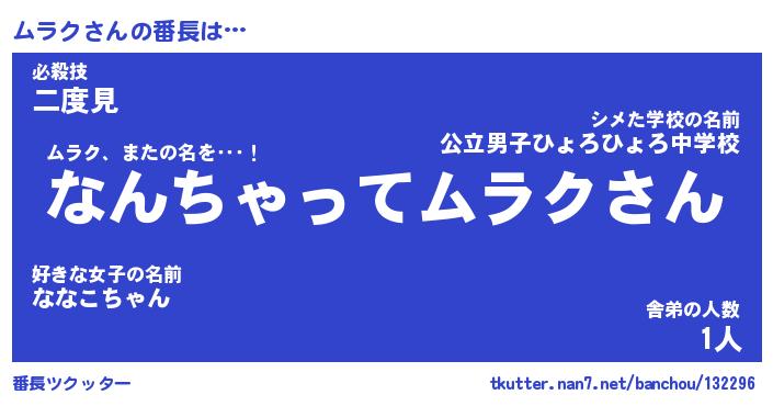 | 欧米人風あだ名 | 『マイケルムラク』『ムラククリステル』 |