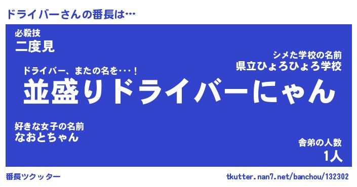 | 男性向けラノベタイトル風あだ名 | 『ドライバーの憂鬱』 |
