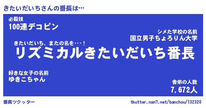 | ピコ太郎風あだ名 | 『キコ五郎』『ピキ史郎』『キタ五郎』 |