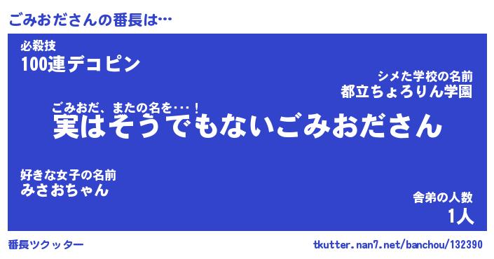 | ヒーロー風カッコイイあだ名 | 『スーパーゴミオダ』『黄金騎士ゴミ』 |