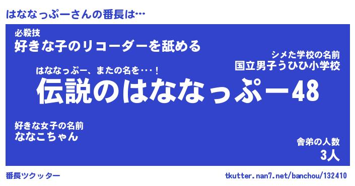 | 伝説のあだ名 | 『伝説のスナイパーはななっぷー』 |