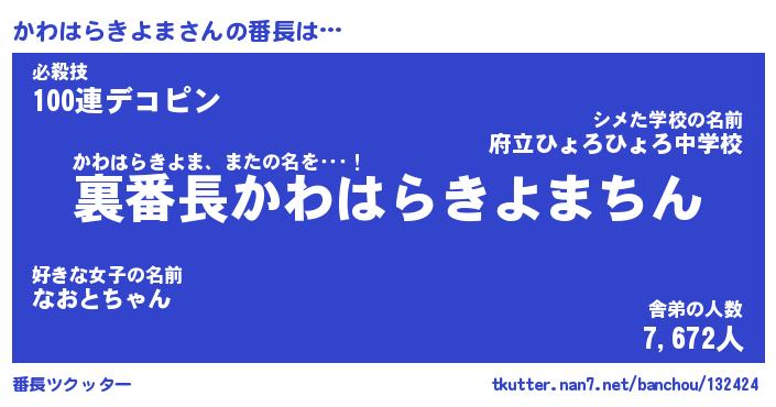 | ヘコむあだ名 | 『かわにー』『牛乳』『かわぷりん』 |