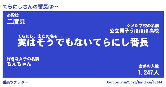 | 意味不明あだ名 | 『ペロリンてらにし』『永久保存てらにし』 |