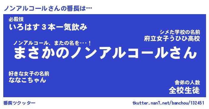 | ヘコむあだ名 | 『ノンふぇ~』『なまこ酢』『ノンを』 |