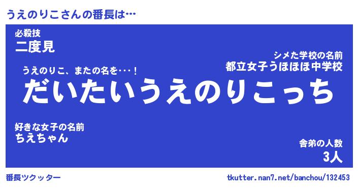 | ポケモン風あだ名 | 『ウエチュウ』『ウエノダネ』 |