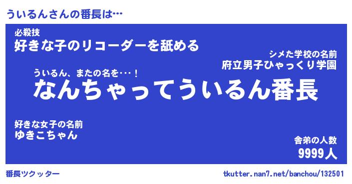 | 伝説のあだ名 | 『伝説のスナイパーういるん』 |