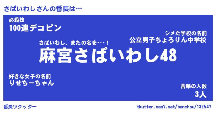 | ヒーロー風カッコイイあだ名 | 『スーパーサバイワシ』『黄金騎士サバ』 |