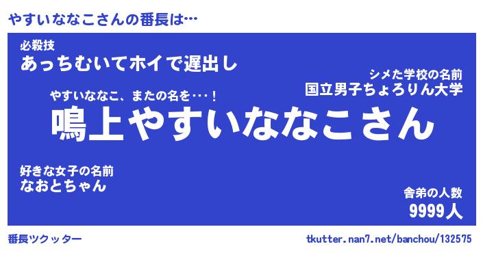| 伝説のあだ名 | 『封印されしスナイパーやすいななこ』 |