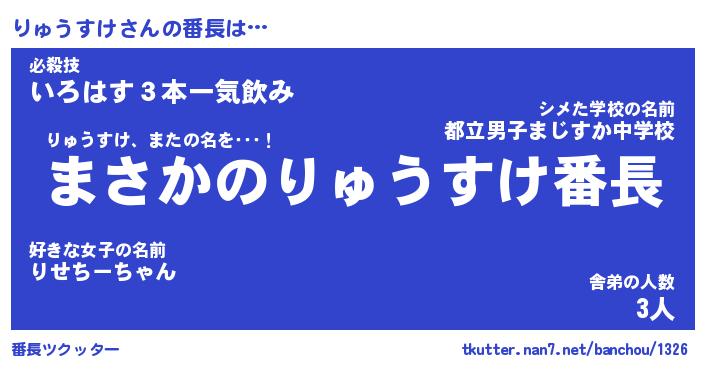 | ファンタジー風あだ名 | 『リュフェル』『エターナルリュウスケー』 |