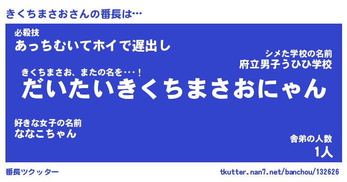 | ヒーロー風カッコイイあだ名 | 『スーパーキクチマサオ』『天弓騎士キク』 |