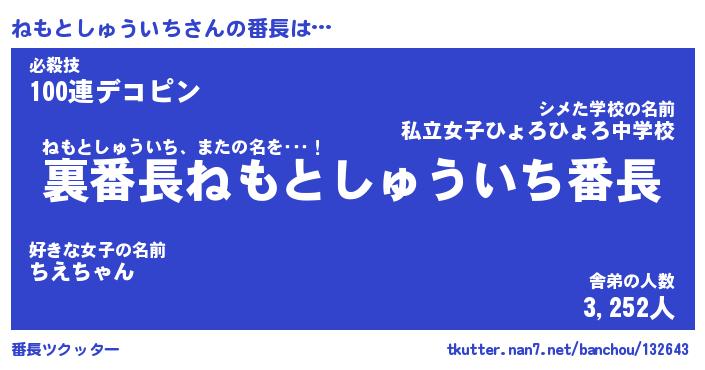 | ヒーロー風カッコイイあだ名 | 『スーパーネモトシュウイチ』 |