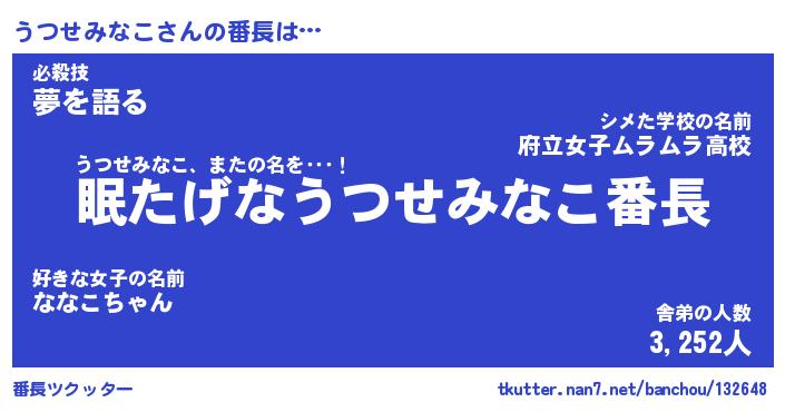| ポケモン風あだ名 | 『ウツチュウ』『ウツセダネ』 |