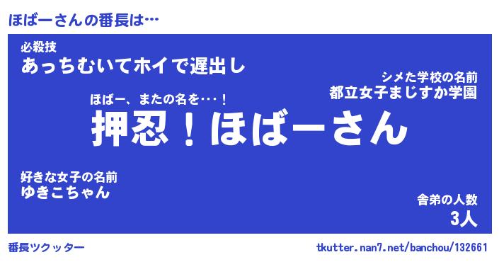 | ヘコむあだ名 | 『ほばにー』『牛乳』『ほばっぺ』 |