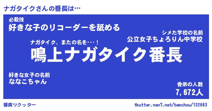 | 2回繰り返すあだ名 | 『ナガナガ』『ナナガガ』『ぬれぬれ』 |