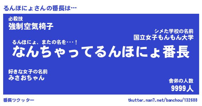 | ヒーロー風カッコイイあだ名 | 『スーパールンホニョ』『天弓騎士ルン』 |