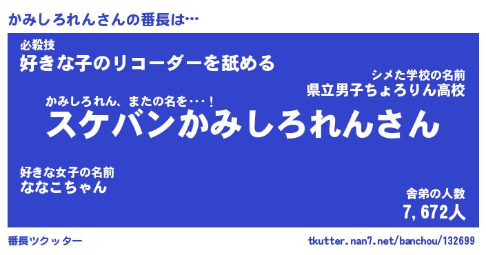 | 肩書あだ名 | 『かみしろれんCEO』『かみしろれん班長』 |