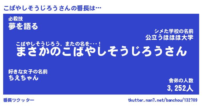 | 肩書あだ名 | 『こばやしそうじろう御曹司』 |