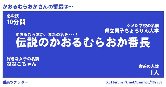 | ヒーロー風カッコイイあだ名 | 『スーパーカオルムラオカ』 |