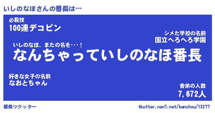 ピコ太郎風あだ名 | 『イコ二郎』『ピイ八郎』『イシ六郎』 |