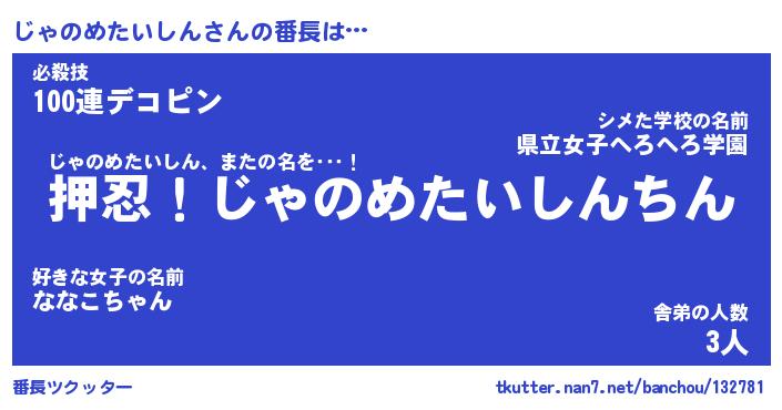 | 肩書あだ名 | 『じゃのめたいしん店長』 |