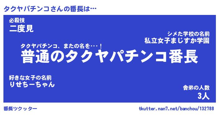 | 欧米人風あだ名 | 『マイケルタクヤパチンコ』 |