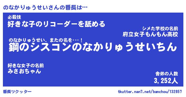 | ヒーロー風カッコイイあだ名 | 『スーパーノナカリュウセイ』 |