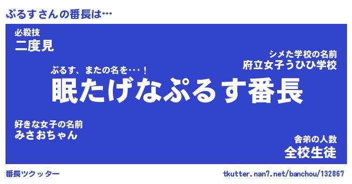 | ヘコむあだ名 | 『ぷるもー』『酢こんぶ』『ぷるを』 |