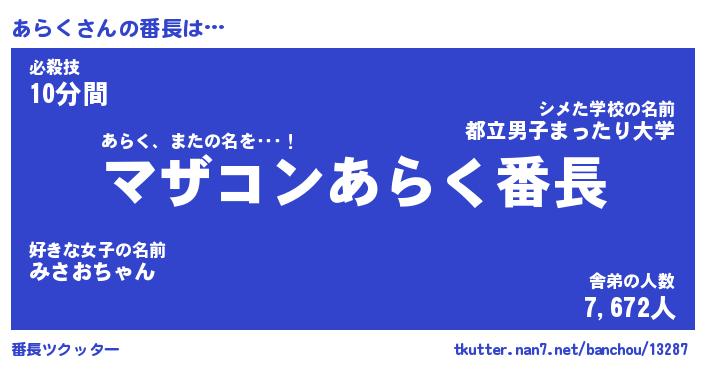| ヒーロー風カッコイイあだ名 | 『スーパーアラク』『ウルトラあらくマン』 |